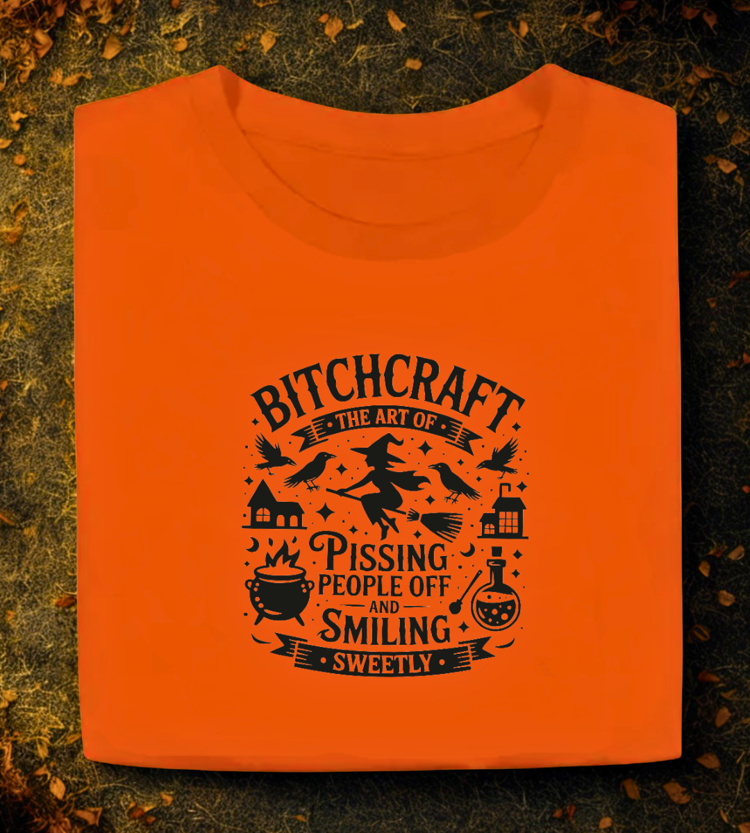 Master the ancient art of Bitchcraft, where your aura sparkles, your sarcasm stings, and your smile is legally considered a weapon. This design is for the charmingly chaotic, the sweetly savage, and anyone who’s ever said “bless your heart” with malicious intent.