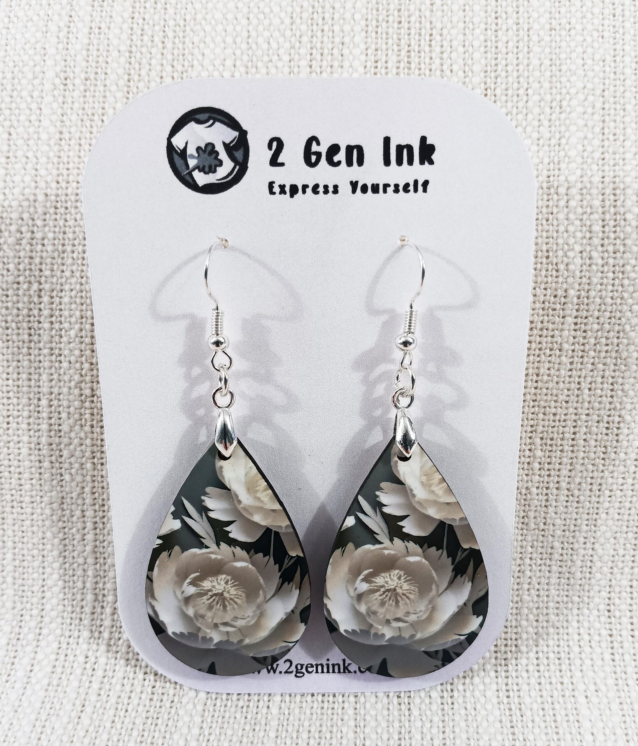 Dark, Daring, and Blooming with Style. These teardrop earrings are where elegance meets edge. Featuring a striking white floral design against a deep, moody backdrop, they’re the perfect pick for those who love their accessories with a little drama. Lightweight and effortlessly chic, they add a bold botanical twist to any outfit—day or night. Whether you’re dressing up or keeping it cool, these earrings say “I’m blooming, but make it fierce.