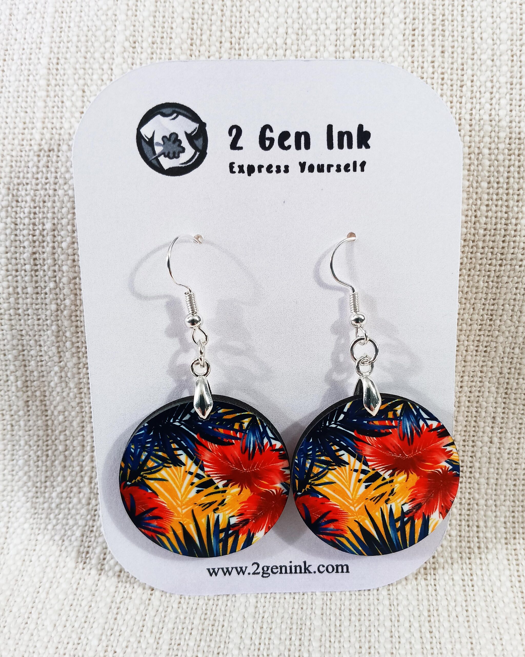 Tropical Heat, Right at Your Ears. Bring the island vibes wherever you go with these fiery leaf-print earrings! Featuring bold reds, oranges, and yellows against a moody black backdrop, they’re like a sunset you can wear. Lightweight and full of flair, these earrings are perfect for turning heads and turning up the heat. Whether you’re beach-bound or just want to feel like it, this pair brings the tropics to your look—no passport required.